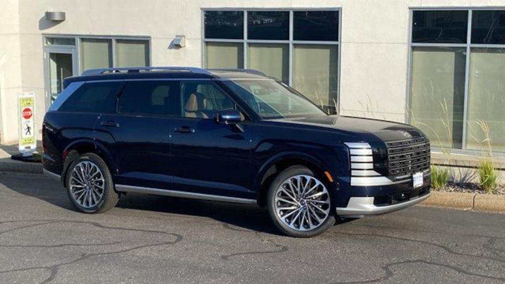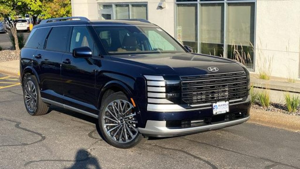 Classy Blue Pearl 2026 Hyundai Palisade Calligraphy AWD 8-Speed Automatic V6 Price includes: $1250 - Hyundai HMF Dealer Choice : $1250 discount and 5.99% APR for 24 months. $44.32 per $1000 financed. Available to well qualified buyers who finance through Hyundai Motor Finance. H704. Exp. 11/03/2025